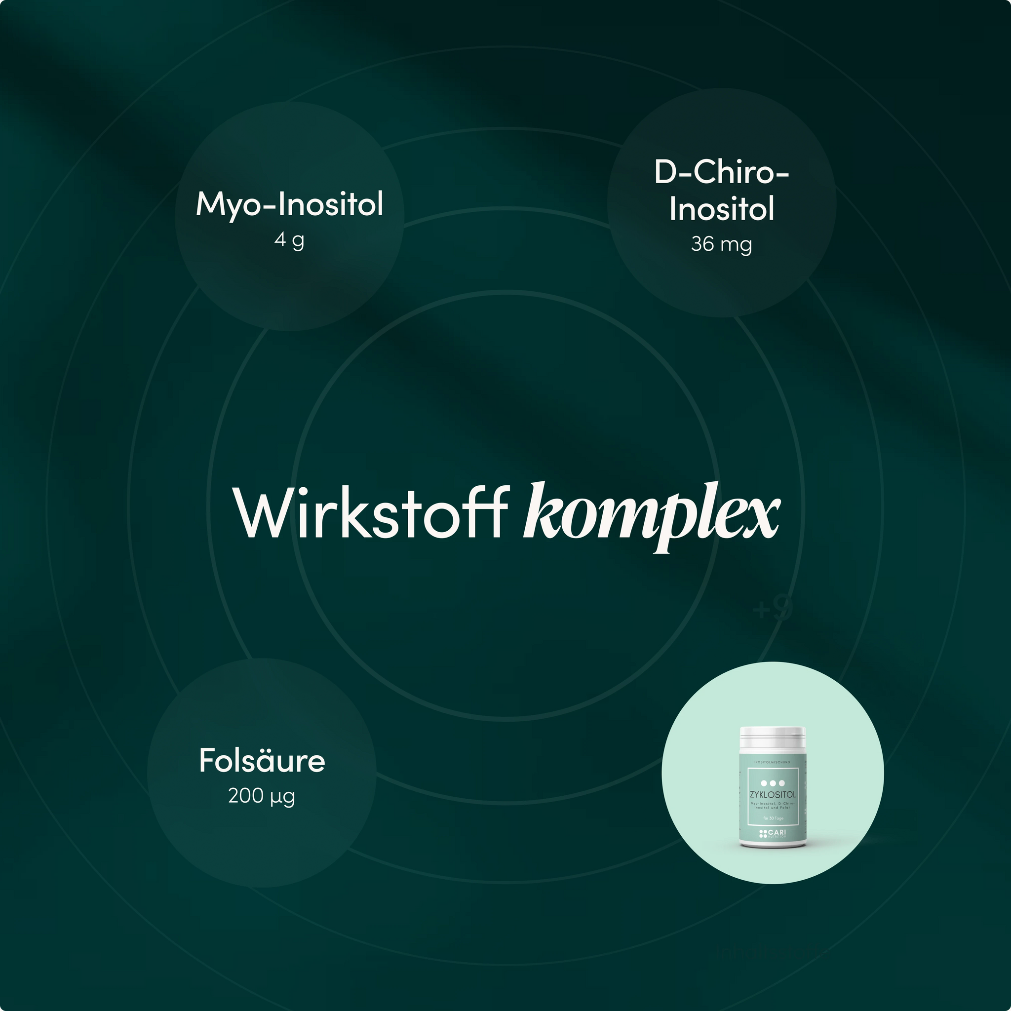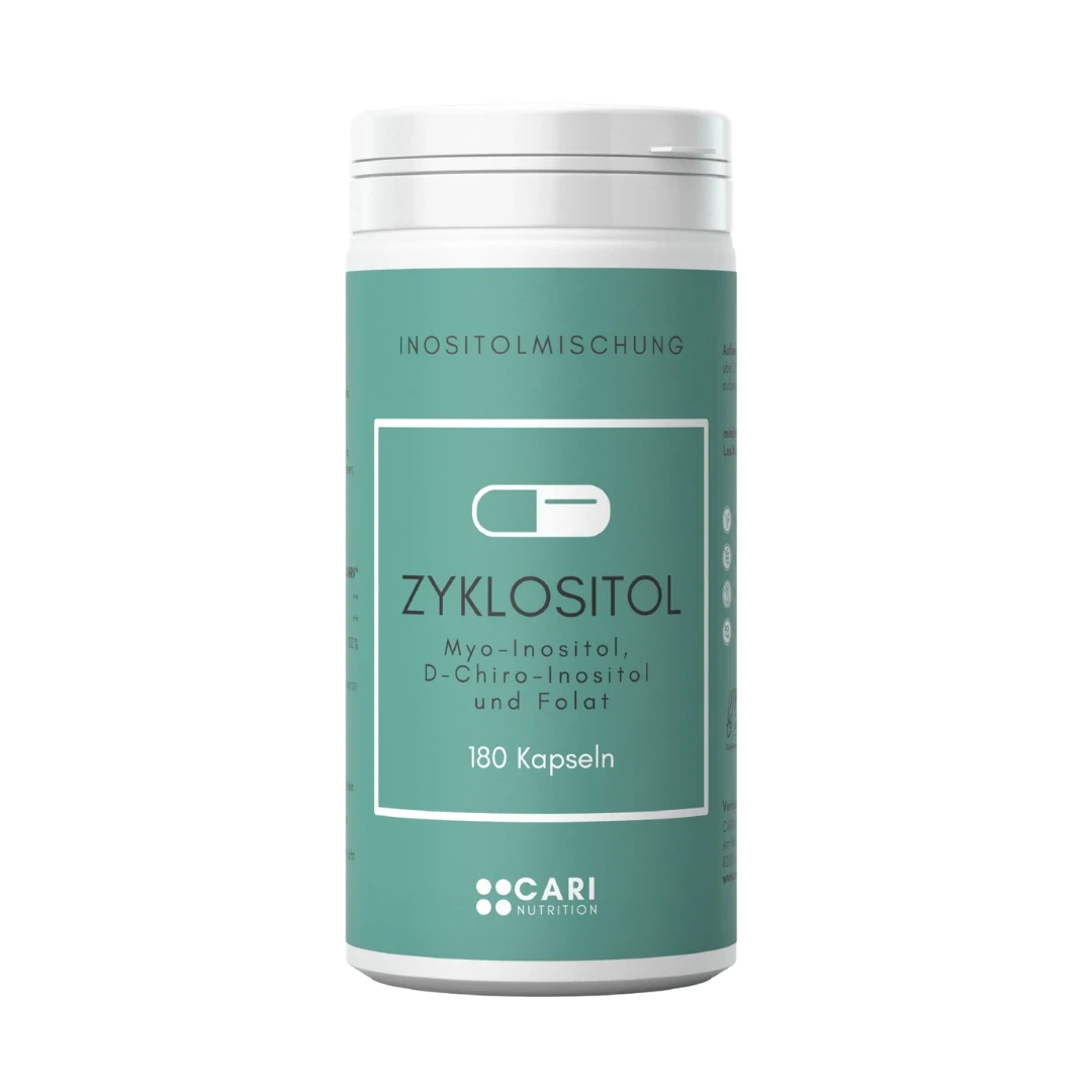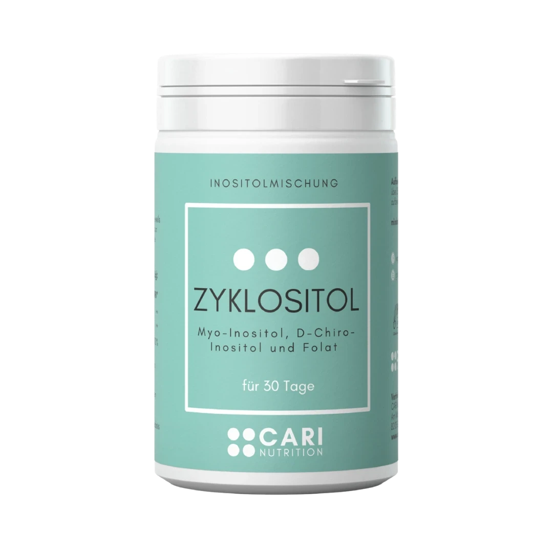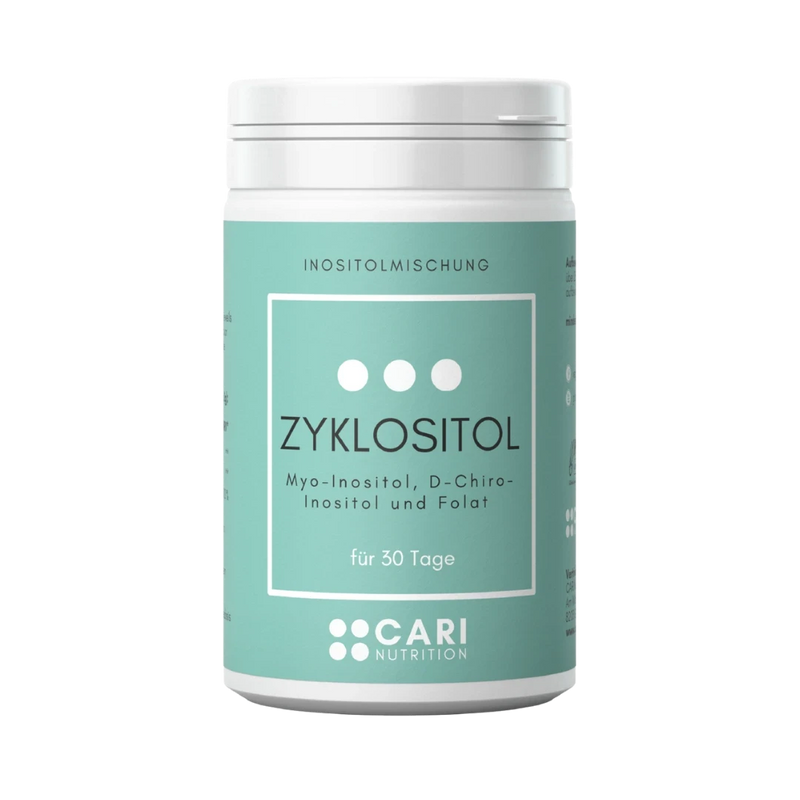 Zyklositol ist eine durchdachte Kombination aus Myo- und D-Chiro-Inositol und der empfohlenen Menge an Folsäure (Vitamin B9) und eignet sich ideal zur täglichen Ergänzung einer bewussten Ernährung.